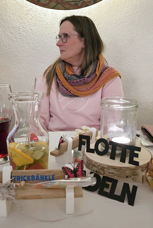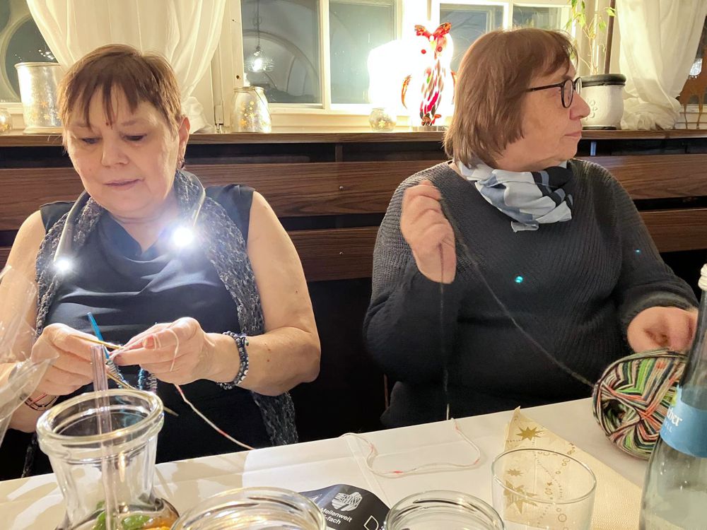 Nach einer Ansprache von Gabi, in der sie allen, die die Flotten Nadeln mit Herz unterstützen, ihren großen Dank aussprach, wurde in gewohnt fröhlicher Runde gestrickt, "geschwätzt" und gegessen.