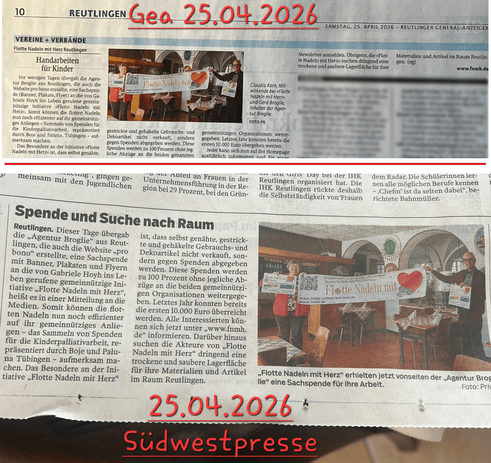 Über Flotte Nadeln mit Herz aus Reutlingen wurde und wird in der Presse, im Radio und im Fernsehen berichtet.